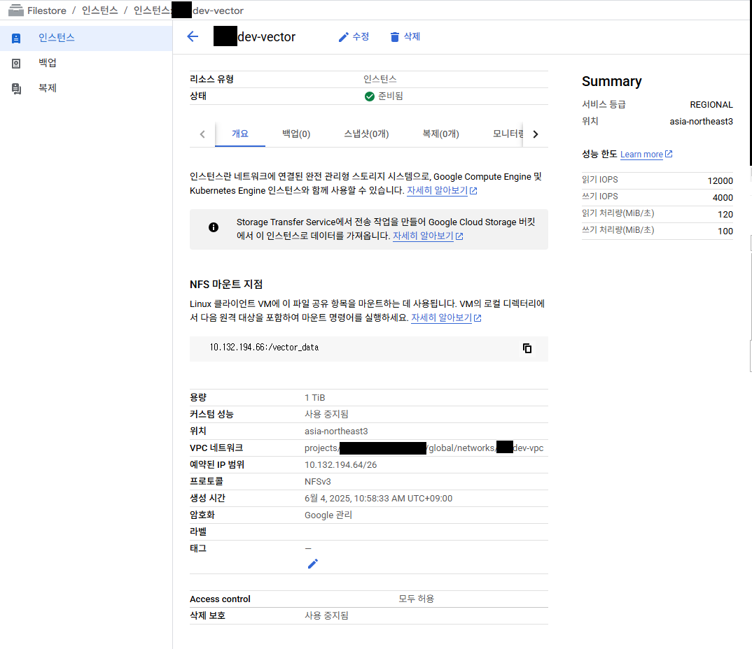 예) 10.132.194.66:/vector_data (해당 인스턴스는 이미 삭제 되었습니다)