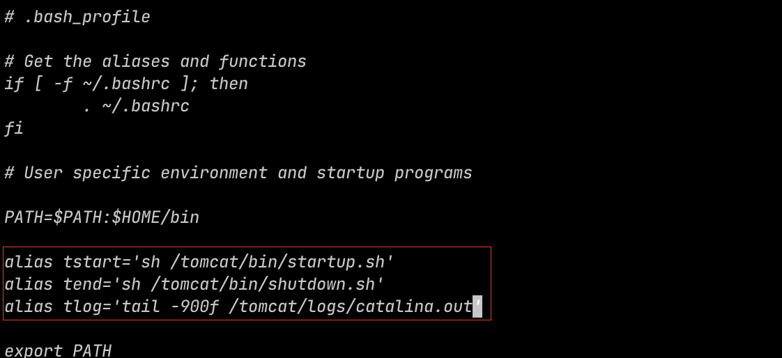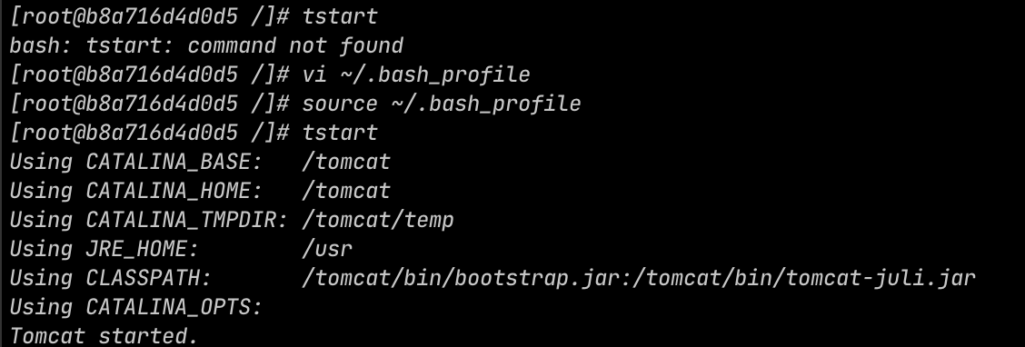 이제 톰캣을 시작 할 때 sh /tomcat/bin/startup.sh 대신 간단하게 tstart라고 입력하면 톰캣이 시작된다!