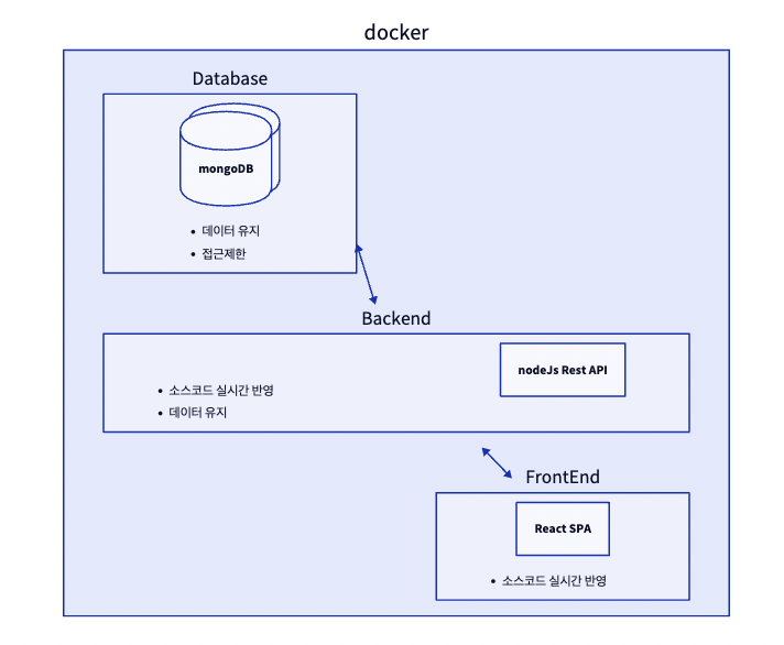 - docker는 npm start 만 실행하고, react의 코드는 브라우저에서 실행된다.